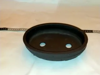 Maceta de cerámica con un diseño único, ideal para bonsáis. Su acabado craquelado le da un toque especial. Maceta de gran tamaño - Forma ovalada. - Tres patas de soporte. - Decoración con relieves. Para recoger en Cádiz