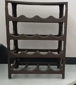 Botellero de plástico con capacidad para varias botellas. - Diseño de ondas en cada nivel. - Estructura robusta.