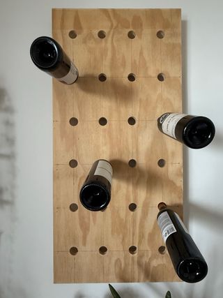 Botellero de madera con capacidad para 24 botellas. - Diseño vertical. - Material: Madera contrachapada.