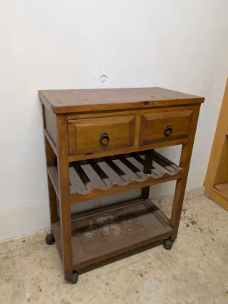 Botellero de madera con cajón almacenaje.