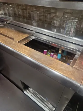 Frigorífico refrigerador horizontal con cuatro puertas superiores correderas de segunda mano como nuevo. Esta heladera es de fabricación nacional. Ideal para barra de bar restaurante cafeteria pasteleria food truck eventos ferias ( ya que es muy facil de transportar). Interior en galvanizado. Mide 196 cm de largo por 55 de ancho y 87 de alto Quieres comprar maquinaria industrial de hostelería, llamanos ahora al 6/4/0/7/6/2/6/4/7 o visita nuestra nave, equipamiento profesional de calidad low cost.