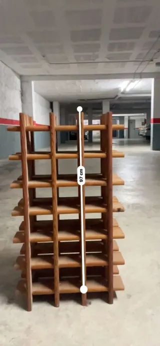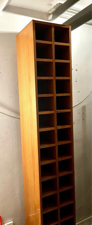 Botellero de madera con capacidad para 34 botellas. Su diseño vertical lo hace ideal para optimizar el espacio. - Estructura robusta. - Múltiples compartimentos. Solo recogida, en Boadilla del Monte