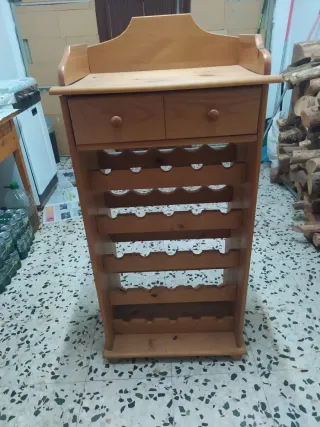 Botellero de madera con cajón