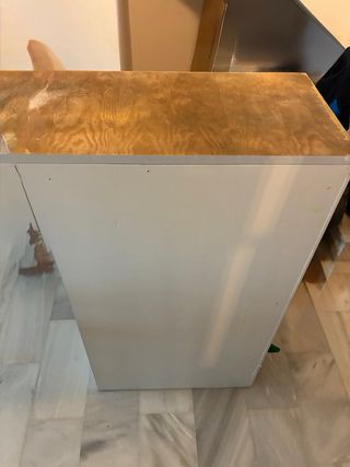 Mueble auxiliar con varios compartimentos, ideal para almacenar botellas o como estantería. Altura 90 fondo30 ext -interior28 ancho 13,5 ext. 10 interior. - Diseño vertical y estrecho. - Acabado en madera clara y blanco.