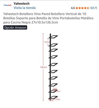 Botellero vertical para pared con capacidad para 10 botellas. - Diseño moderno y elegante. - Soporte metálico resistente. - Ideal para cocinas o bodegas. Precio NO negociable.