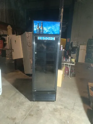 Botellero vertical para bebidas, ideal para mantener tus refrescos fríos. Su diseño es moderno y funcional. - Puerta de cristal. - Estantes interiores ajustables. - Iluminación LED. - Panel de control.