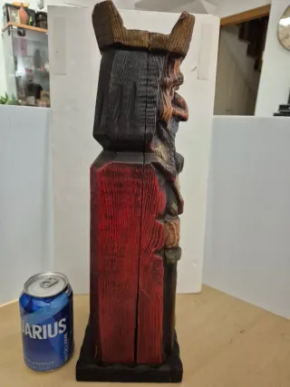 Figura artesanal de madera tallada y policromada, representando a un rey o señor medieval. Pieza de colección, muy decorativa y llamativa por tamaño. Medidas en las fotos. Con alguna señal del paso del tiempo pero en muy buen estado. Antiguo vintage figura escultura madera tallada artesanía decoración regalo vino medieval castillo rústico antico decorazione ornamento
