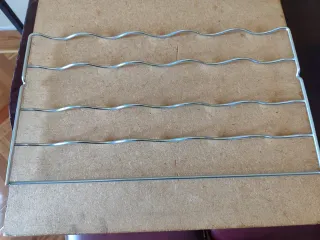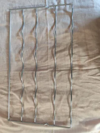 Botellero para frigorífico Bosch modelo KGN36VW35. - Fabricado en metal. - Diseño ondulado para botellas.Estante para botellas de vino, ideal para frigoríficos. Se encuentra en buen estado. Válido para otros modelos de BOSCH, Balay, etc. - Perfecto para organizar tus botellas. - Diseño ondulado para un mejor agarre. - Material metálico resistente. Medidas del producto Ancho: 48 cm Fondo: 27 cm Alto: 1 cm
