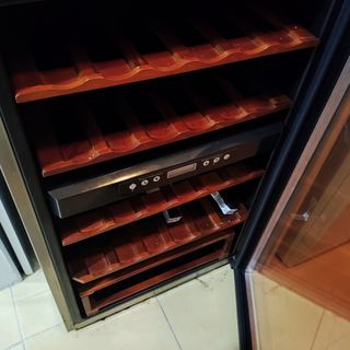 Botellero de vino Hoover en buen estado. Ideal para conservar tus vinos favoritos a la temperatura perfecta. Con dos estancias a diferentes temperaturas para vinos tintos, blancos y cava. - Capacidad para 30 botellas. - Estantes de madera. - Control de temperatura digital. - Diseño elegante y compacto.
