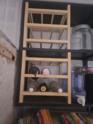 Se vende botellero vinoteca de madera para 10 botellas. Es plegable, ocupa poco espacio y tiene un diseño elegante. Mide 61 cm de largo x 38 cm alto x 19 cm fondo.Se entrega en mano en aranjuez o getafe industrial, se hacen envíos. - Perfecto para cualquier cocina u hogar. - Diseño entrelazado. - Fabricado en madera. Botellero plegable cocina salón comedor habitacion despacho madera vino vinoteca