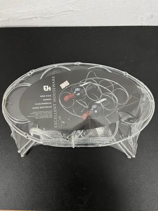 Botellero de pie para 4 botellas, sin estrenar. - Diseño moderno y minimalista. - Estructura metálica resistente. - Ideal para organizar tus vinos.