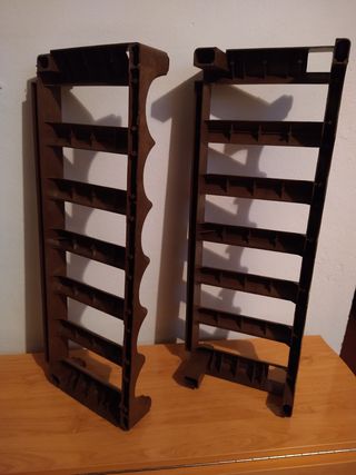 2 botelleros de plástico para 6 botellas cada uno Uno de ellos tiene las patas cortadas y ajusta al suelo Ancho 62, alto 19, profundo 23