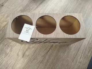 Original botellero hecho a mano con madera natural. - Diseño único con acabados rústicos. - Base ancha y estable. - Soporte para una botella.