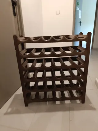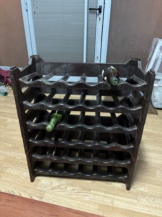 Práctico botellero de madera con capacidad para varias botellas. - Diseño modular. - Estructura robusta.