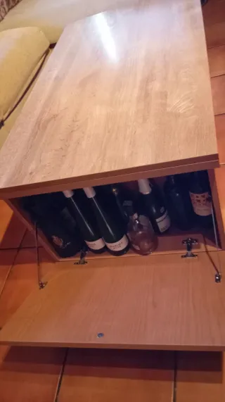 Solo hasta el 1 de abril Mueble auxiliar con patas con botellero y espacio de almacenaje en color madera clara con puertas correderas. En un lado hay un estante y en el otro un colgador para copas y se puede agregar el botellero (tengo las piezas pero yo no lo he usado). Tiene dos pequeños desperfectos en la parte superior, como se aprecia en las fotos. Medidas 120 cm alto x 80 cm ancho x 39,5 cm fondo. Distancia de las patas al suelo 37 cm. Hueco bajo el mueble 31 cm de alto. Se recoge montado en La Latina. Es un quinto con ascensor, pero quizá haya que bajarlo por las escaleras.