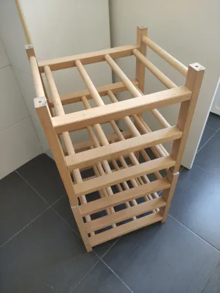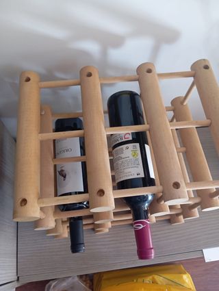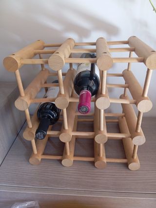 Práctico botellero para organizar tus botellas. Su diseño permite apilar varias unidades para maximizar el espacio. 7 baldas por 25 euros. El precio depende del número (se separa cada listón con 6 espacios para las btellas) - Capacidad para varias botellas. - Estructura robusta.
