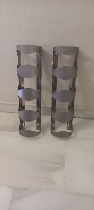 Conjunto de dos botelleros de diseño moderno. - Fabricados en metal. - Cada botellero tiene capacidad para 4 botellas.