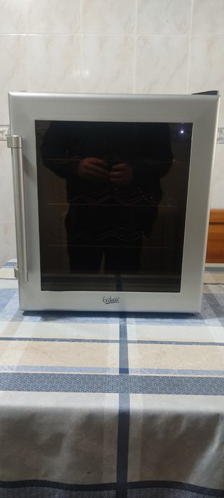 Botellero de vino en buen estado. Ideal para conservar tus vinos a la temperatura perfecta. - Capacidad para 16 botellas. - Diseño elegante y compacto. - Color plateado. - Luz interior - Regulador temperatura