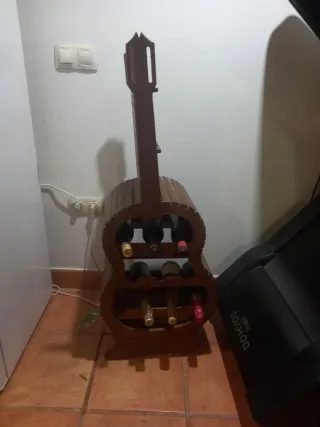 Original botellero de madera con forma de guitarra. Ideal para almacenar tus botellas de vino. - Diseño único en forma de guitarra. - Capacidad para varias botellas.