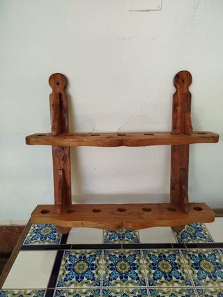 Original botellero artesanal con un diseño en forma de cruz. - Fabricado en madera maciza. - Diseño único y decorativo.