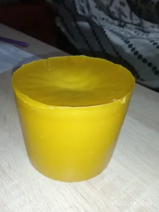 Bloque de cera de abeja natural de nuestro propio colmenar de 850 gramos. Ideal para velas, manualidades, cosmética, etc Ahorra en costes de envío al no llegar al kilo de peso!!