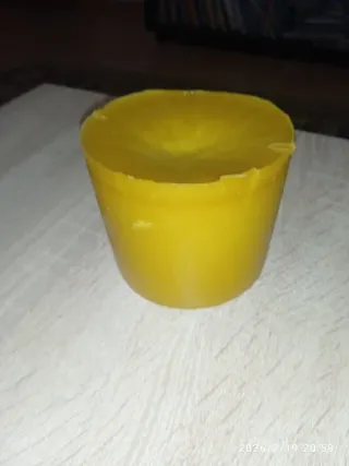 Bloque de cera de abeja pura de nuestro colmenar. Sin aditivos . Olor característico natural. Ideal para manualidades, velas, cosmética etc - Peso: 500 gramos. Disponemos de más productos apícolas. El bloque puede ser cilíndrico y en una plancheta