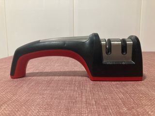 Afilador de cuchillos con mango ergonómico para un agarre cómodo. - Diseño de dos etapas para afilar y pulir. - Base antideslizante para mayor seguridad. - Apto para la mayoría de cuchillos de cocina.