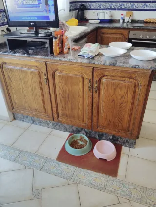 Módulos de cocina madera y mármol