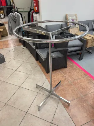 Este perchero circular es una pieza funcional y elegante para organizar tu ropa. - Estructura de metal resistente. - Diseño circular moderno. - Base estable de metal.