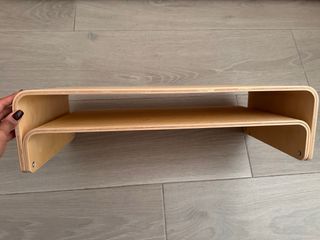 Estante de madera Ikea con un diseño curvo y moderno, ideal para elevar tu portátil o monitor. - Fabricado en madera contrachapada. - Acabado natural. - Dos niveles para mayor organización.