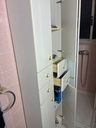 Mueble modular de madera, ideal para cocina o como unidad de almacenaje adicional. Su diseño versátil se adapta a diferentes espacios. - Estructura de madera. - Combinación de cajones y estantes. - Tiradores de metal. - armario modular, cada modulo tiene unas medidas. - hay cinco módulos Ancho 55 excepto el modulo central que tienen 45 cm Profundidad de todo el mueble 41 Altura de todos los módulos 240 -125€ todo el mueble o 20€/modulo Tiradores para cambiar y algunos riele de cajón a repasar