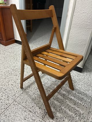 Silla plegable de madera, ideal para espacios reducidos o para tener un asiento extra. - Diseño clásico y funcional. - Fácil de guardar y transportar.