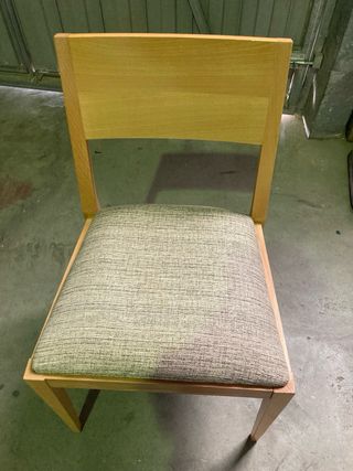 Silla de comedor con asiento tapizado. - Estructura de madera. - Asiento de tela. Individual 5€, pack 5, 15€
