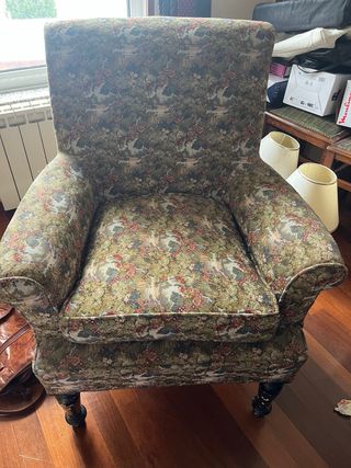Butaca con un bonito tapizado floral. - Diseño multicolor. - Tejido de tela. - estructura en muy buen estado y original 70 cm ancho y 90 cm alto Dispongo de 2 unidades. Precio unitario. Se mejora precio al llevar las dos.