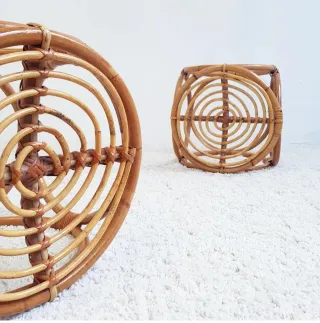 I N S T A G R A M para ver más mobiliario: @ lasperlasdelaabuela **HACEMOS ENVIOS** Entrega GRATUITA en Barcelona ciudad, para otras localidades consúltanos. Pareja de divertidos taburetes de bambú, asiento en espiral para mayor soporte y comodidad. Producidos durante la década de los 80 en España. Hechos a mano. decoracion interior diseño salon estudio bar restaurante años 70 80 design chairs stools sillas mesa butacas mila breuer thonet knoll wegner artemide kartell cassina colombo eames corbusier piretti magistretti scarpa cesca italian table furniture armchair meuble living tabouret siège