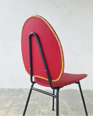 I N S T A G R A M para ver más mobiliario: @ lasperlasdelaabuela *HACEMOS ENVIOS* Entrega GRATUITA en Barcelona ciudad, para otras localidades consúltanos. Silla CABRI atribuida a Jacques Hitier, arquitecto y deseñador francés. Producida a finales de la década de los 50. Estructura de metal lacada en color negro con asiento y respaldo ovalado en skay rojo y ribete en color dorado. diseño salon estudio mobiliario sxx retro mesa table butaca salon knoll showroom eames panton cassina vitra piretti corbusier vilanova magistretti mila breuer butacas bauhaus colombo scarpa vestidor design furniture chairs chaises sièges green blac