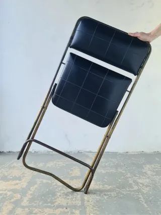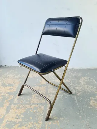 I N S T A G R A M para ver más mobiliario: @ lasperlasdelaabuela **HACEMOS ENVIOS** Entrega GRATUITA en Barcelona ciudad, para otras localidades consúltanos. Silla plegable de la marca francesa LAFUMA, fundada en 1930. Estructura tubular de metal con acabado en latón dorado y asiento y respaldo tapizados en skai con un patrón de cosido geométrico. diseño chair comedor despacho escritorio mesa butaca lampara lighting design breuer mila knoll thonet cassina corbusier eames saarinen magistretti vitra colombo midcentury spaceage chaise siège black