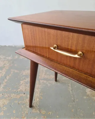 I N S T A G R A M para ver más mobiliario: @ lasperlasdelaabuela *HACEMOS ENVIOS* Entrega GRATUITA en Barcelona ciudad, para otras localidades consúltanos. Mesita de chapa de embero y madera de roble. Producida en Francia a mediados de siglo. Con cajón, detalles en dorado y cantos redondeados. Medidas: Altura 62cm. Ancho 54cm. Profundidad 34cm. diseño design escritorio despacho desk shelving vitra cassina kartell tramo mila breuer cesca bitossi knoll rohe eames colombo tria scarpa silla chair butaca armchair mesa midcentury spaceage bauhaus años 70 80 90