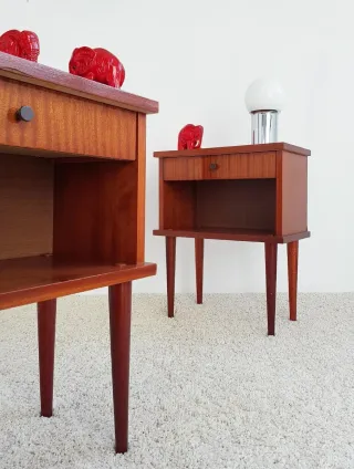 I N S T A G R A M para ver más mobiliario: @ lasperlasdelaabuela *HACEMOS ENVIOS* Entrega GRATUITA en Barcelona ciudad, para otras localidades consúltanos. Set de 2 mesitas de noche producida en Francia la década de los 60. Con cajón, espacio abierto y patas cónicas. diseño design escritorio despacho desk shelving vitra cassina kartell tramo mila breuer cesca bitossi knoll rohe eames colombo tria scarpa silla chair butaca armchair mesa midcentury spaceage bauhaus años 70 80 90
