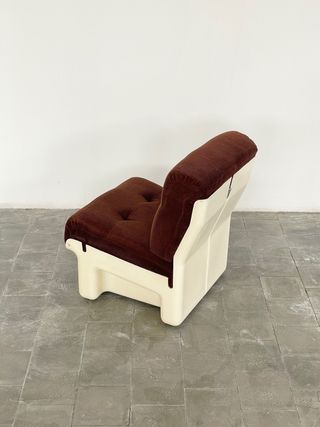 Disponible también para alquiler @polopstore Bonito sillón procedente de Italia, formado por una carcasa de fibra de vidrio lacada en blanco y tapicería original en pana marrón. Buen estado general con algunas marcas del paso de los años. Medidas: 75(h)x60(ancho)x70(profundo) no leer cassina flos disseny diseño kartell oluce arteluce cesca artifort airborne knoll pierre paulin colombo alessi fase tramo mila ricard selene vicario dieter rams braun art poulsen mariscal sottsass habitat ikea tusquets coderch midcentury nordico danes teca plastico cenicero butaca sillon sofa sedia chair atrezzo interiorismo bd puntmobles michel cadestin airborne