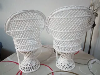 Vendo Dos Butacas Decorativas De Mimbre, Perfectas Para Exhibir Peluches O Como Elementos De Decoración. Medidas:42Al X 28An X 18Fo, Precio:15€ Cada Una, Telf:653418287 O Whatsapp Se Vende Tal Como Se Ve.. No, Hago Envío.. - Diseño De Estilo Peacock. - Base Y Asiento Con Detalles Trenzados. - Color Blanco.