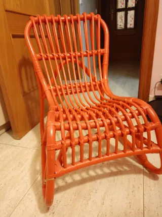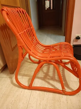 Butaca de mimbre con un vibrante color naranja, perfecta para añadir un toque divertido a cualquier espacio. - Diseño de ratán. - Ideal para niños.