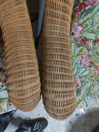 Acogedoras butacas de mimbre con un diseño clásico que aporta calidez a cualquier espacio, especialmente para exteriores. Se venden las 2 butacas por 55 euros, 1 por 30 euros.