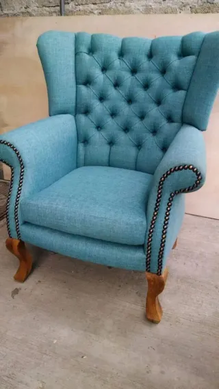 Butaca orejero con un diseño clásico y elegante. Aporta un toque acogedor a cualquier espacio. - Respaldo capitoné. - Patas de madera. Silos para mallorca. No envío disculpar