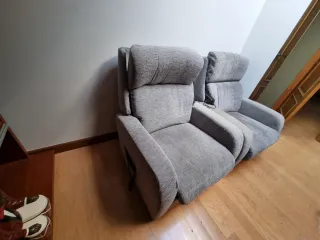 Se venden dos butacas reclinables en tela de color gris. Son cómodas y están en buen estado. - Mecanismo de reclinación. - Asientos acolchados.