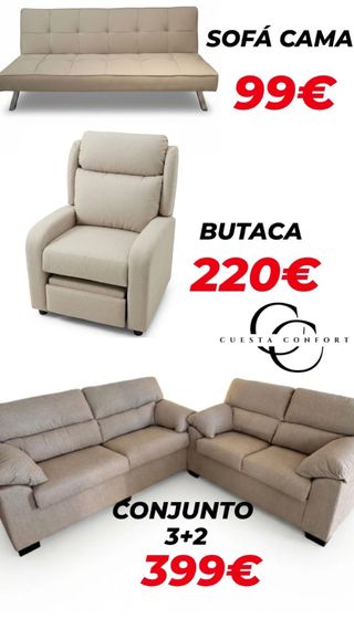 Sofá cama. butaca relax. conjunto 3+2 plazas