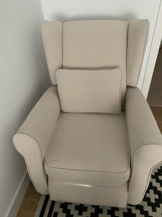 Butaca relax con mecanismo reclinable. - Tapicería de tela. En las fotos señalo unos protectores que le puse para proteger la tela. Se pueden quitar. Buen estado general. Recogida en San Fernando, piso bajo, a bajar 5 escalones.