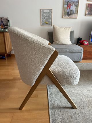 Butaca comprada en Zara Home - Tapicería suave en tono crudo tipo borrego - Patas de madera 66x76x58cm