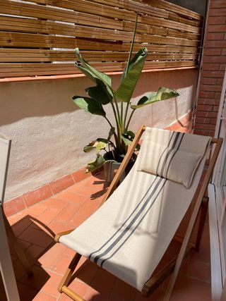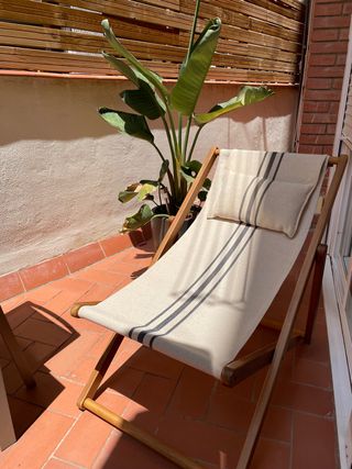 Butaca de bambú con un cojín beige en perfecto estado, es muy cómoda! - Diseño elegante en color negro. - Cojín en tono beige. *No es de Zara pero no me deja no marcar marca. Es de tienda local. **Tiene un rasguño en reposabrazos apreciable en las imágenes ***A recoger en Sagrada Familia
