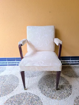 1 Silla tipo butaca con reposabrazos Medidas: 53*55*80. El asiento mide 45cm, una altura estándar Tengo Si vives en Sevilla y alrededores puedo llevarlo. Precio del transporte depende de zona.